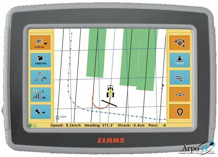 Интерфейс между GPS PILOT и AGROCOM NET/AGROCOM MAP (ПО для управления движением от CLAAS) позволяет использовать и администрировать сохраненные загонки, базовые линии и сведения о задачах. Благодаря этому все собранные данные можно использовать и упорядочивать в течение многих лет.